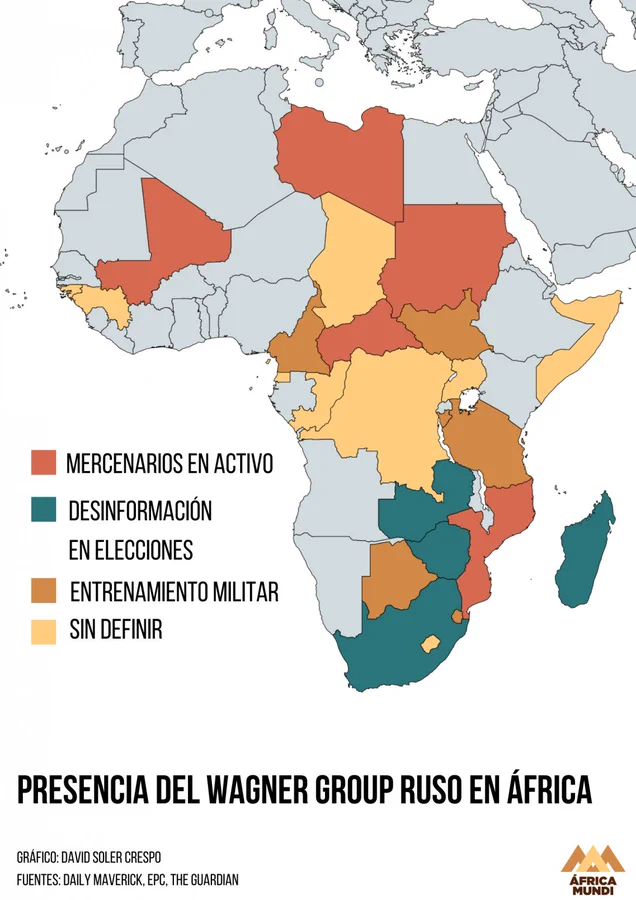 | El Grupo Wagner no son sólo mercenarios rusos, sino un conglomerado de empresas de diversas actividades dirigidas bajo el paraguas de Putin (Twitter- África Mundi, 27 sept. 2021) |